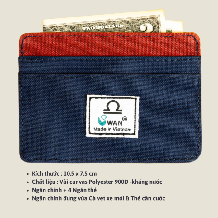 Ví đựng thẻ nam nữ SWAN vải canvas nhiều ngăn giữ card, tiền, giấy tờ tùy thân, thẻ sinh viên