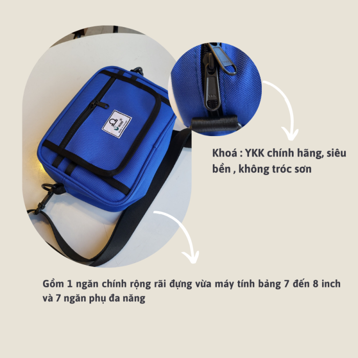 - Cấu tạo: Gồm 1 ngăn chính rộng rãi đựng vừa máy tính bảng 7 đến 8 inch và 7 ngăn phụ đa năng